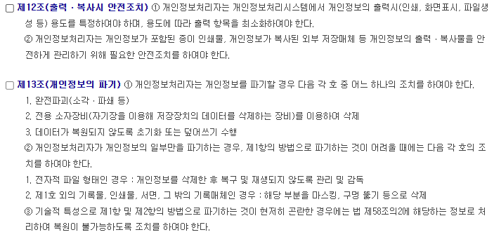 개인정보의 안전성 확보조치 기준(행정규칙) 주요 내용 요약